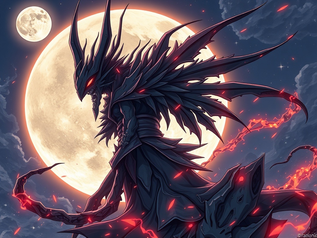 Karakter ini digambarkan memiliki tampilan yang sangat menakutkan dan memukau, dengan wajah yang setengah manusia dan setengah monster demon, mata merah menyala, dan bentuk tubuh yang gagah berwibawa. Ia juga selalu mengenakan jaket hitam dan pedang yang tajam, menandakan kekuatan dan statusnya sebagai Upper Moon 1.